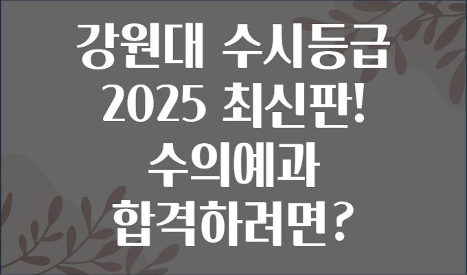 강원대 수시등급 2025 최신판! 수의예과 합격하려면? 🐶🐱🎯안녕하세요! 강원대학교 수의예과 입시를 준비하는 여러분! 😃 올해도 어김없이 수시모집 시즌이 다가오면서, '나의 내신 등급은 어디까지 커버될까?', '수의예과 합격 가능성은 어느 정도일까?' 하는 고민이 많으시죠? 🤔 특히 2025학년도 입시에서 강원대 수의예과는 어떤 변화가 있을까, 최신 합격 전략은 무엇일까 궁금하실 텐데요.오늘은 강원대 수시등급 2025 최신 정보와 수의예과 합격 방법에 대해 🐕🦺📚 심층 분석해드리고자 합니다! 합격 꿀팁부터 내신 관리, 실전 준비 방법까지, 꼼꼼하게 체크해 보면서 여러분의 꿈에 한걸음 가까워지는 시간이 되길 바랍니다! 🚀👩⚕️👨⚕️🌈 1. 강원대 수의예과란? 간단 개요 🐾강원대..